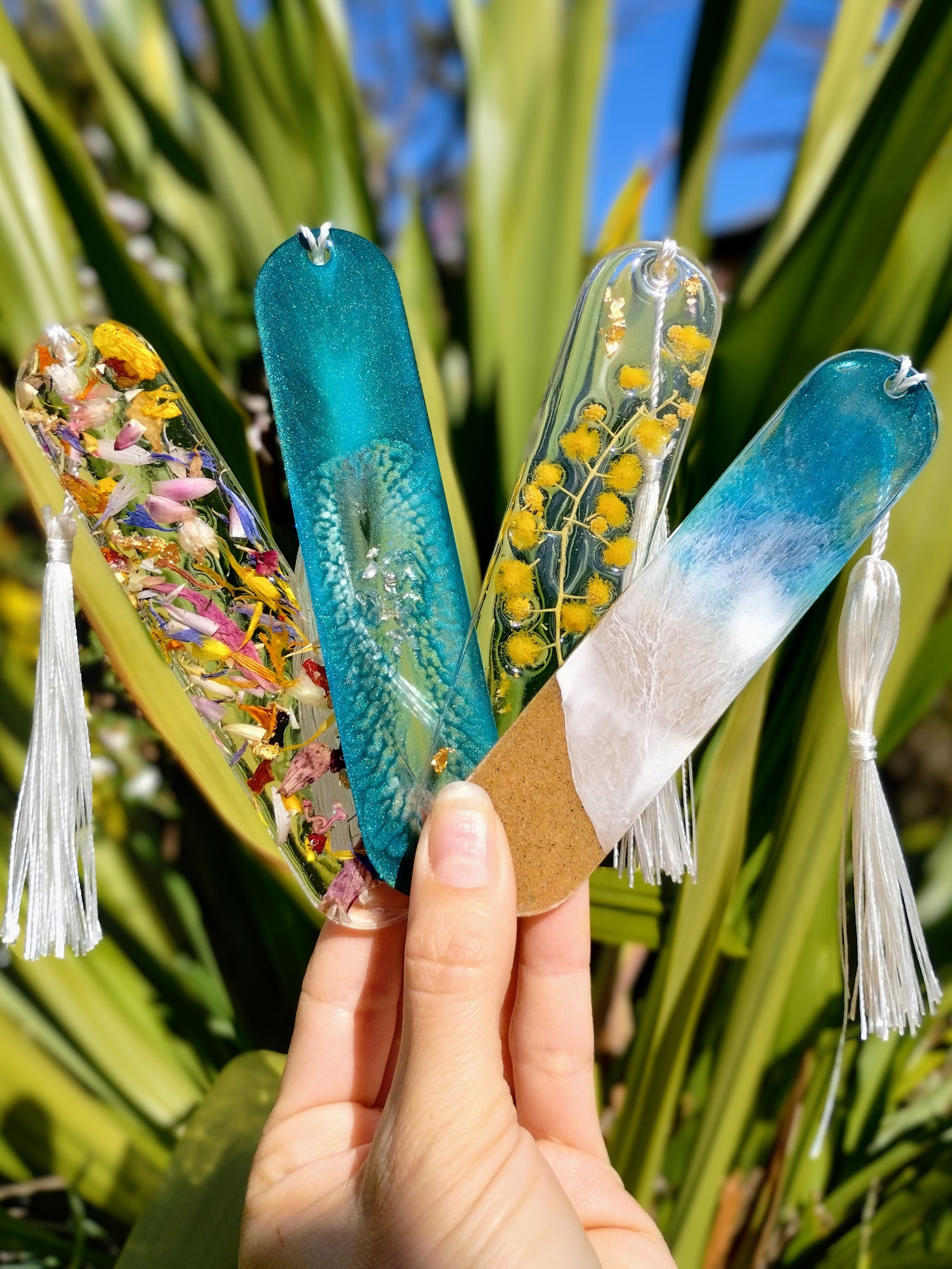Chosen from a variety of stunning designs, including botanical, coastal, and shimmer themes. Each bookmark is a one-of-a-kind piece.