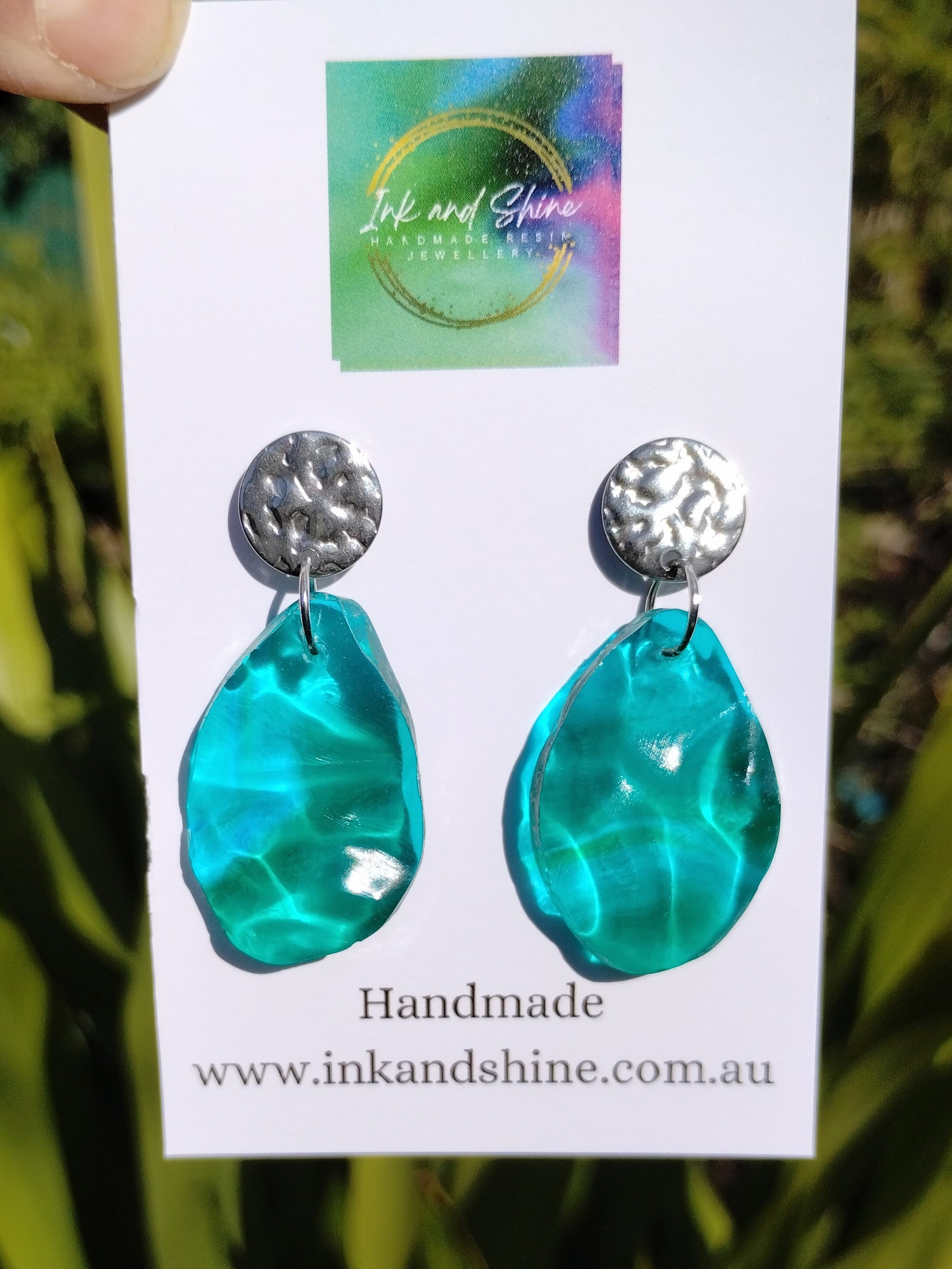 Immerse yourself in the serene beauty of the ocean with our Lagoon Drop Earrings, a captivating piece from our new Ocean Collection. Handcrafted with passion, each one individually molded and shaped by hand, embracing fluid, organic forms where no two are alike, these stunning resin drop earrings capture the tranquil essence of calm, clear waters, bringing a touch of coastal paradise to your everyday style.