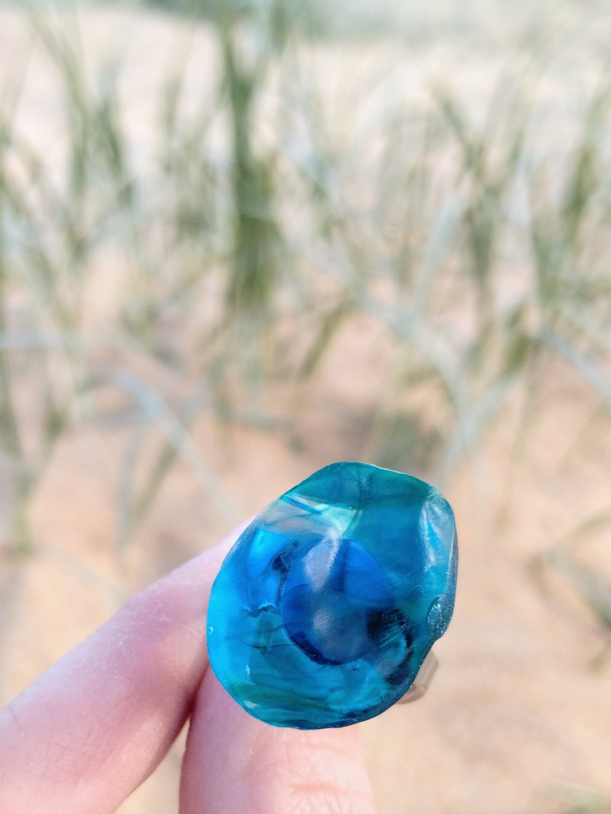 Versatile Ocean Hues & Shapes: Available in a variety of captivating ocean colours and organic shapes, these rings offer a diverse selection to complement any outfit and mood, allowing you to carry a piece of the sea with you.